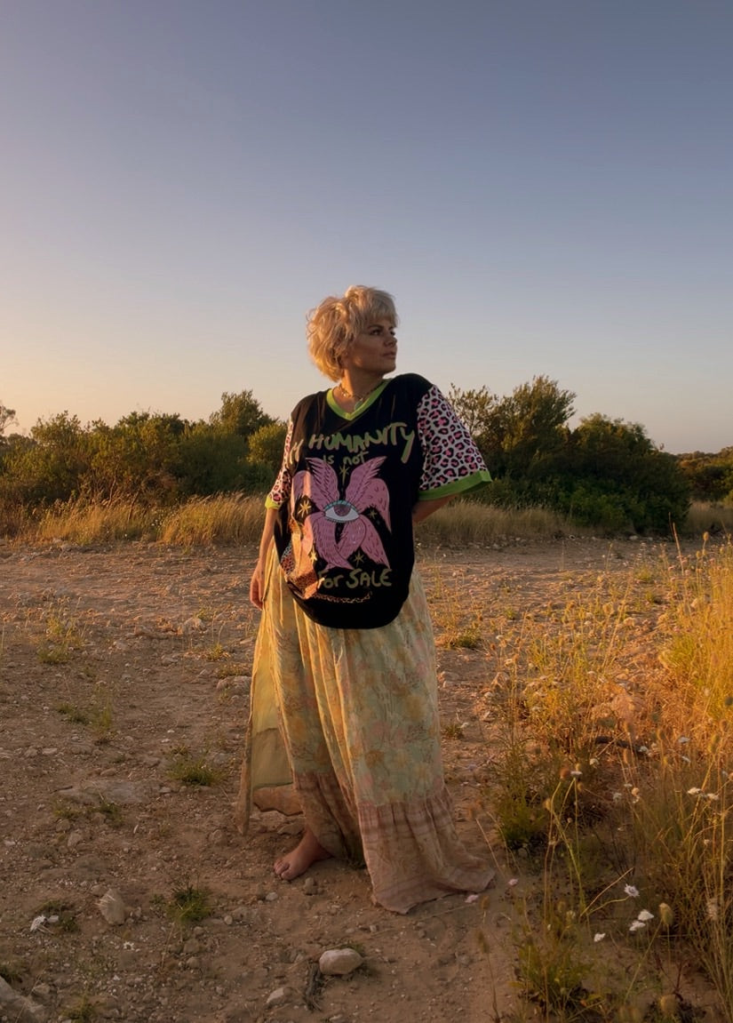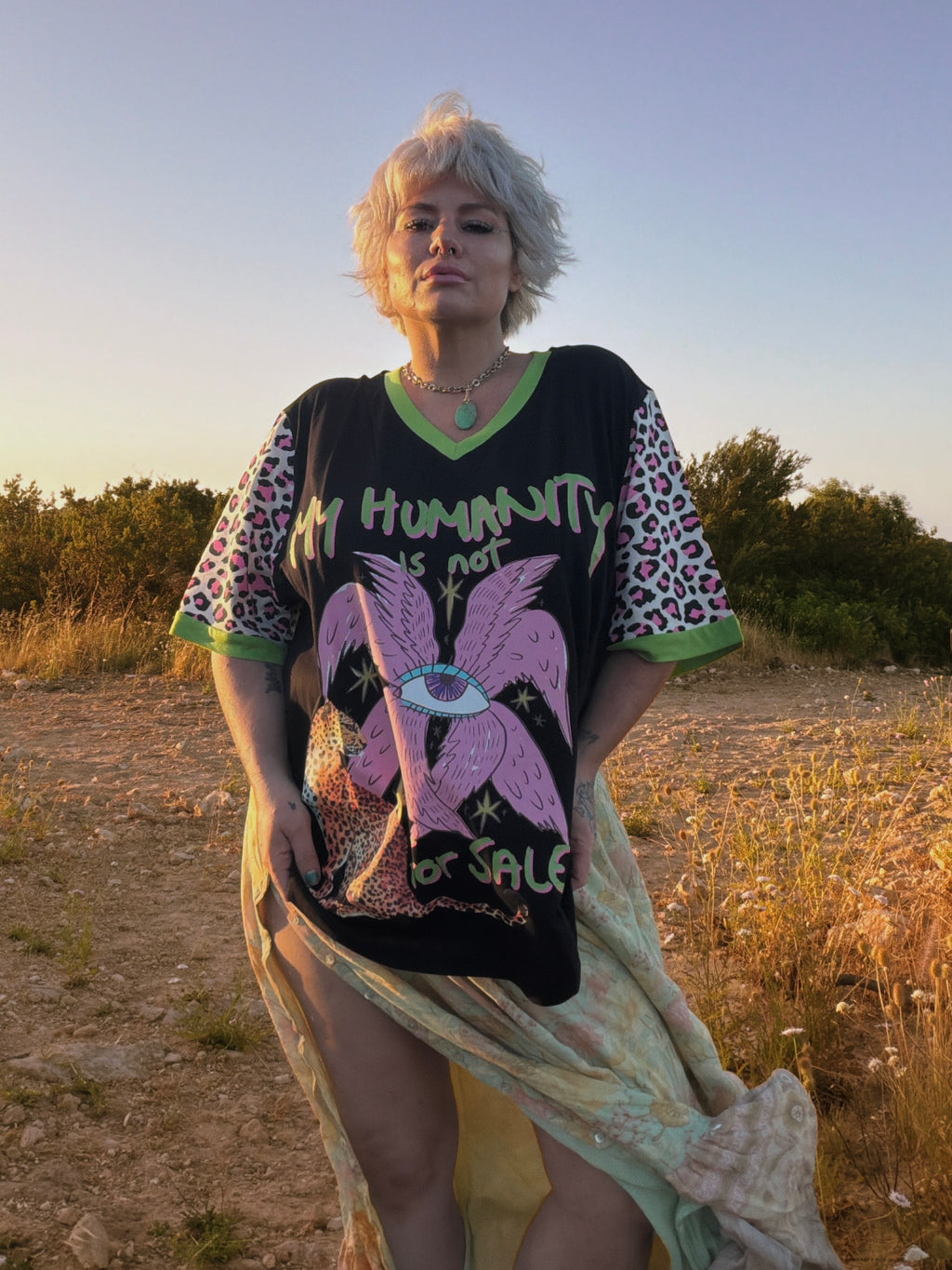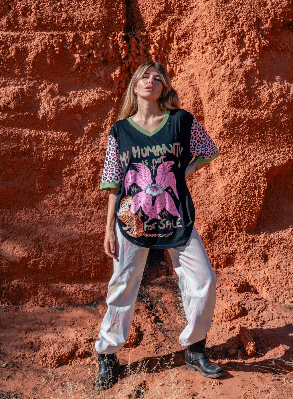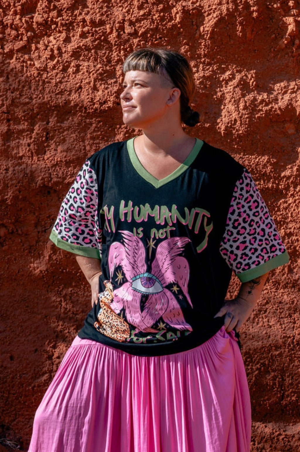 Humanity OVERSIZED tee - Black, pastel pink and olive green.