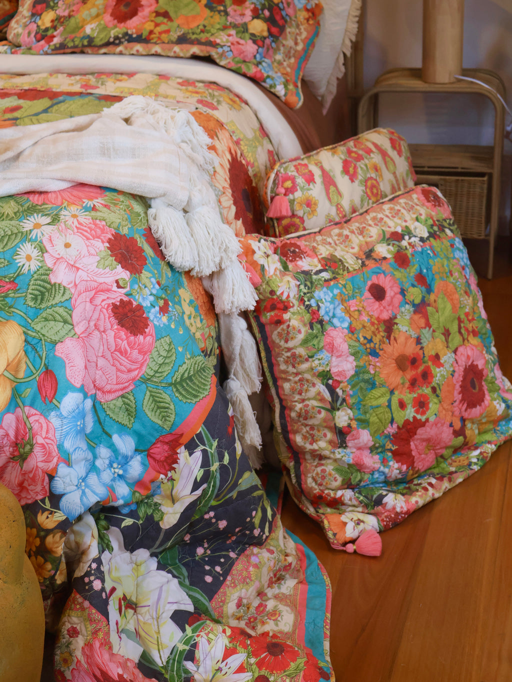 Designed to be used on the bed, (with the matching pillows and Euro cushions if you want the full vibe) or thrown over the kids on the couch, in summer by themselves and in winter over the top of the quilts for insulation (and vibes)
